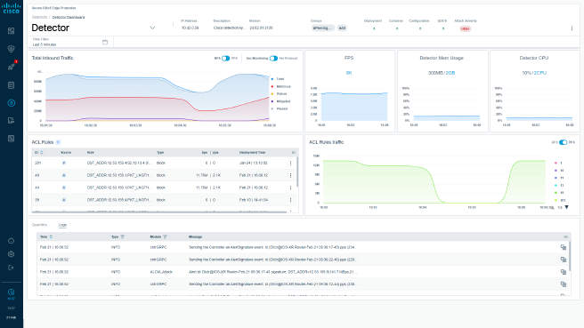 Cisco Secure DDoS Edge Protection on routers detects and mitigates attacks autonomously in real time, protecting networks from volumetric distributed denial of service (DDoS) attacks at the edge.
